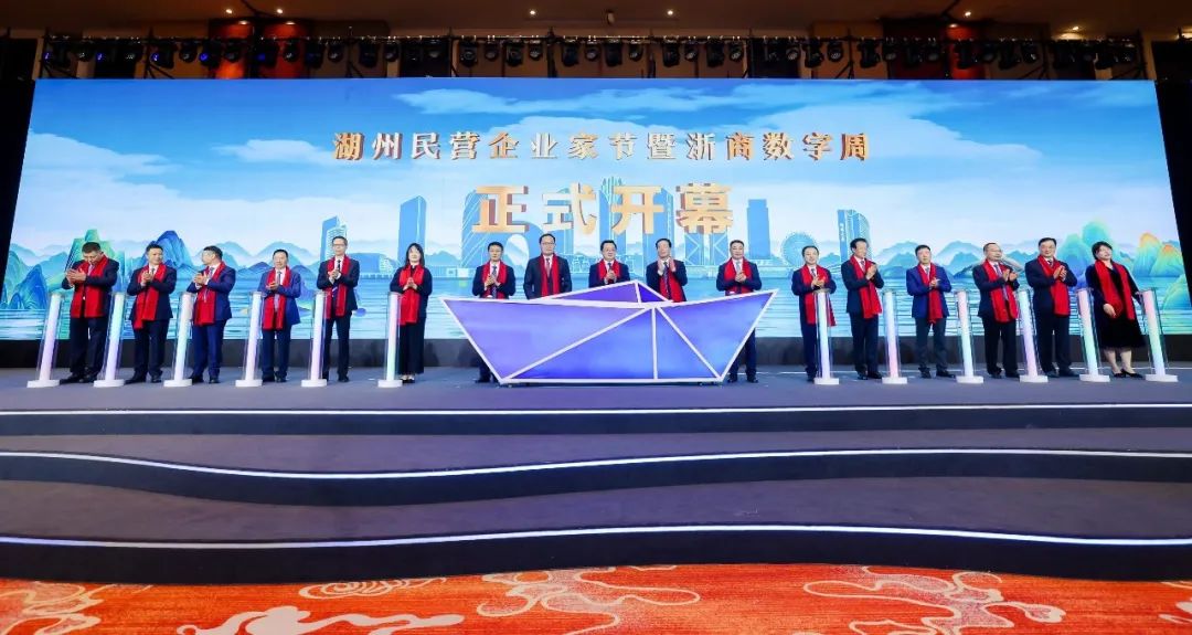 省、市有关向导和张天任董事长,, ,, ,,,以及相关企业家启动2023湖州民营企业家节暨浙商数字周开幕仪式。。。。 。。。